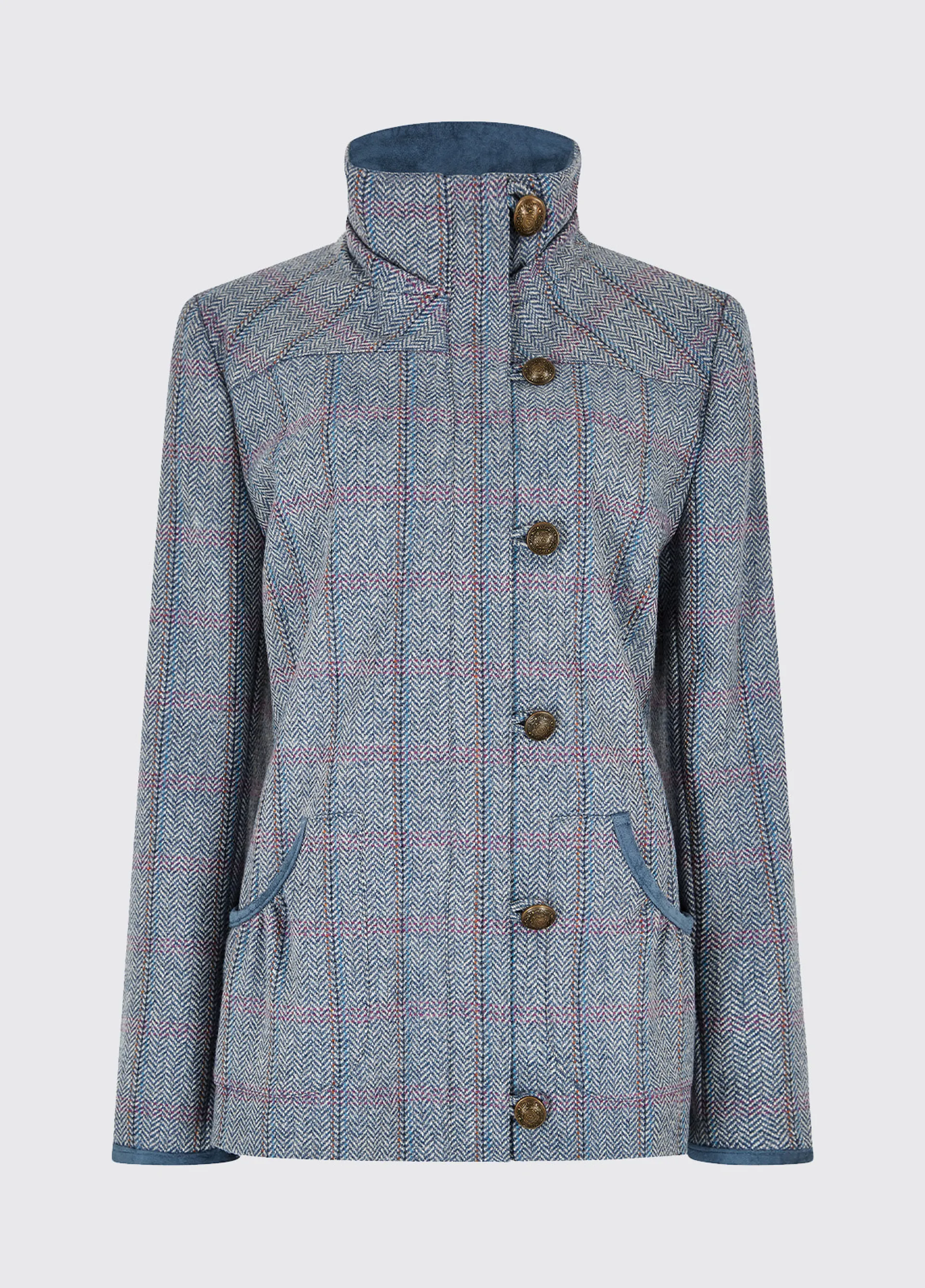 The Bracken is a smart women's tweed sporting jacket available in a variety of tweed colours. A Teflon coated 100% wool exterior repels showers and a storm flap fastened off center with eye-catching cast metal buttons hides a full-length zip which extends to the stand-up collar, to keep out chills.