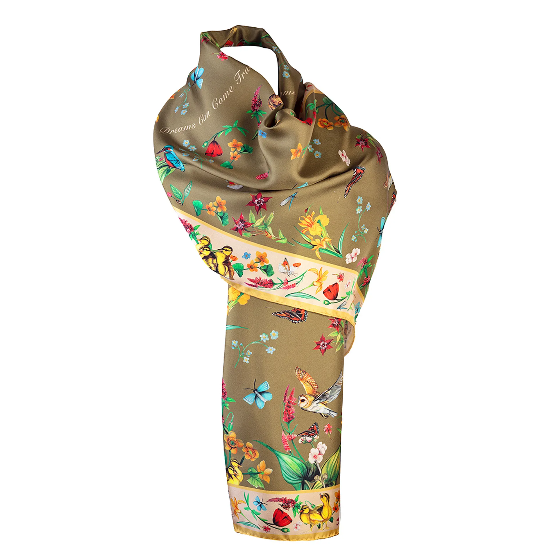 Clare Haggas Dreams Can Come True Classic Silk Scarf - Olive/Honey