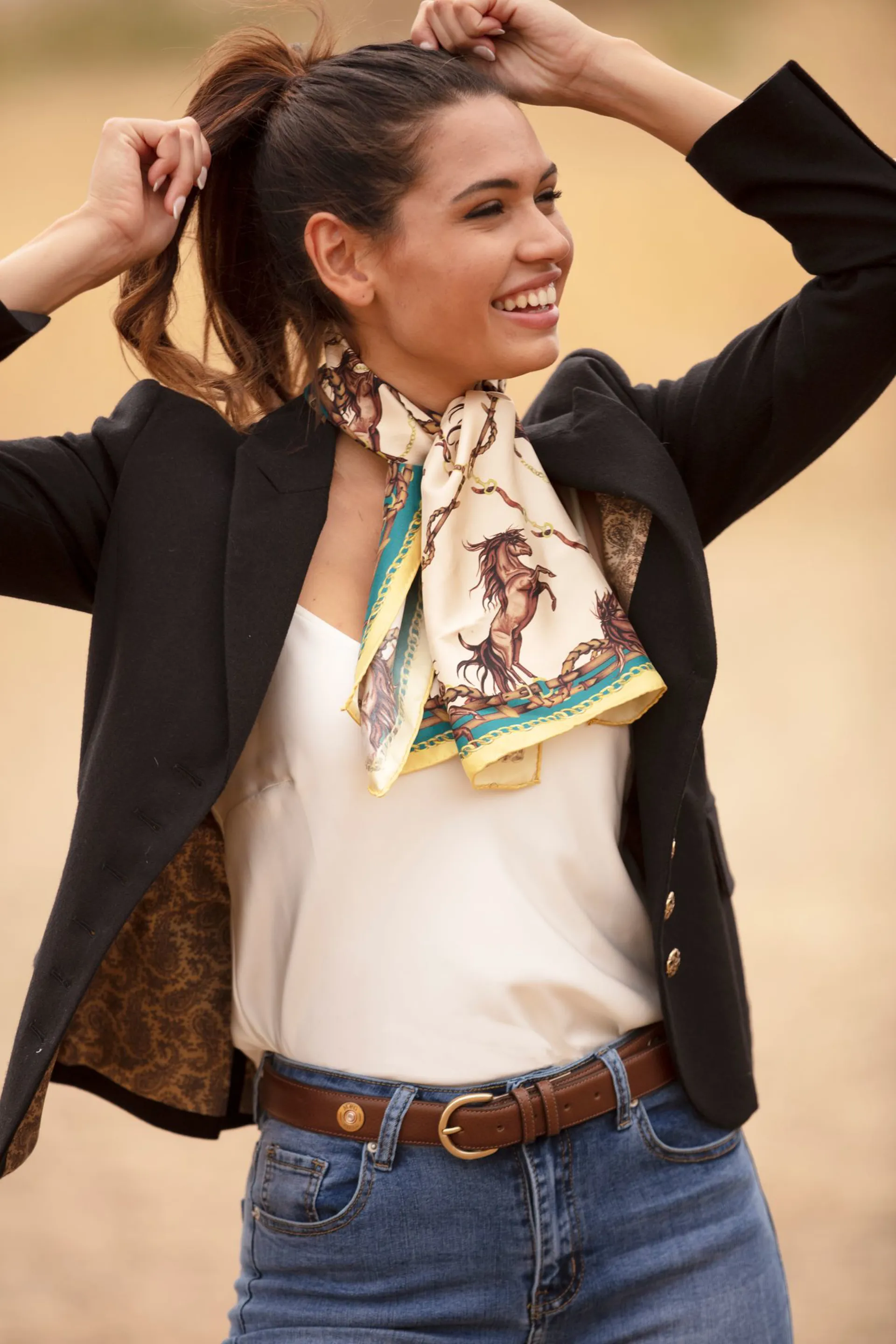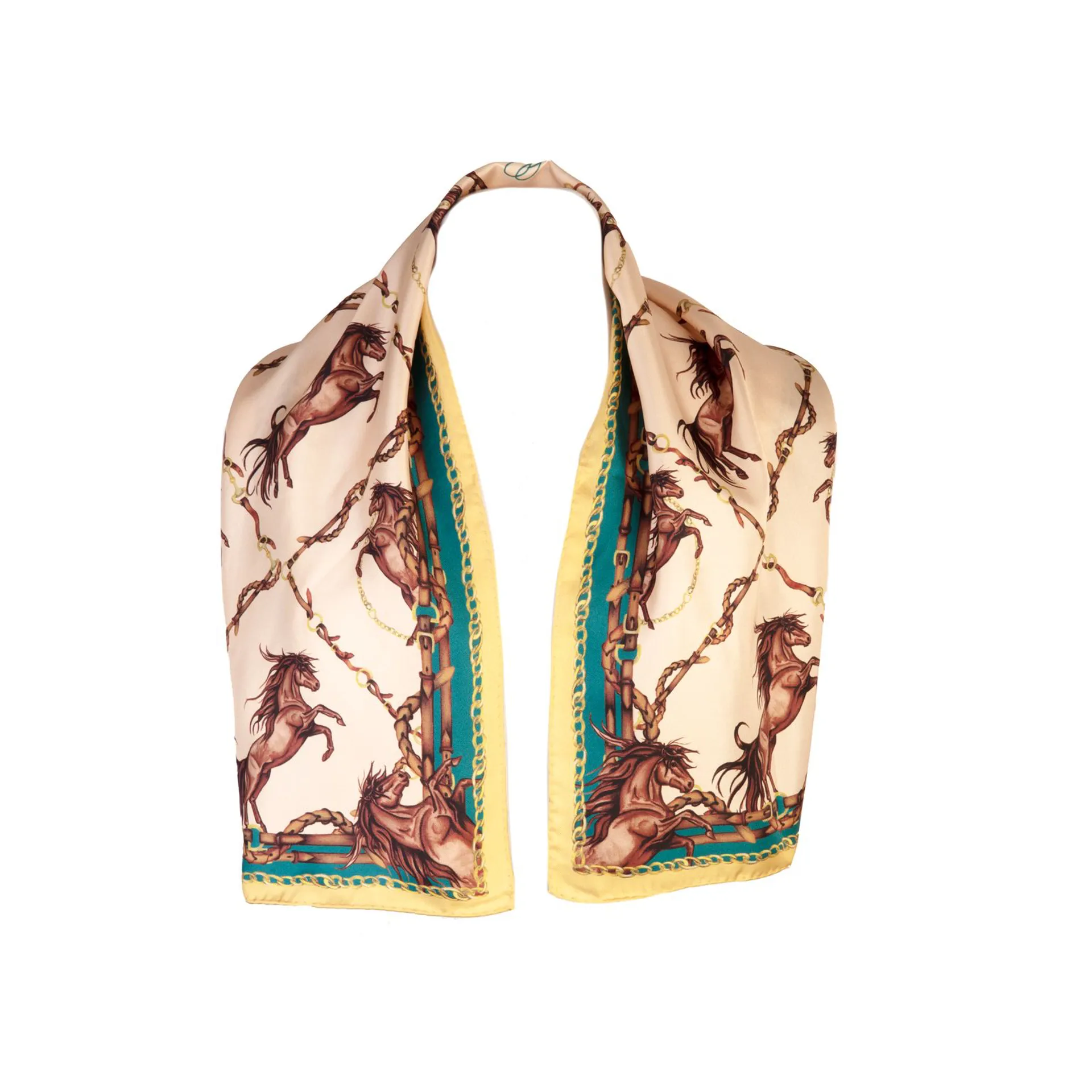 Question(s) answered about Clare Haggas Rearing To Go Narrow Silk Scarf - Oyster/Teal